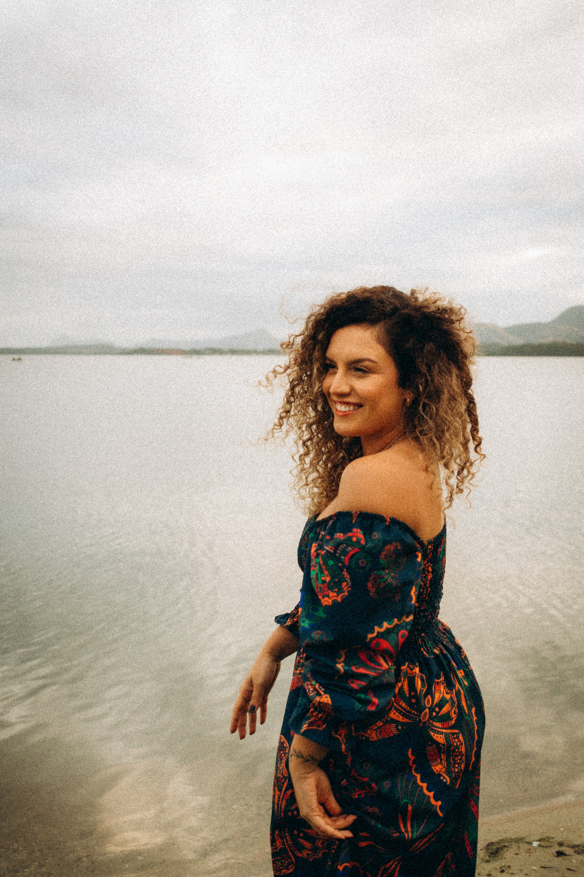 "Antes da foto eu estava insegura, não costumo me ver leve e ousada em fotos. Após o ensaio me vi de um jeito que não esperava, bonita, leve, bem. Fiquei muito feliz com esse resultado. Eu tenho questões desde pequena com meu cabelo cacheado, uma longa jornada de auto aceitação e de me enxergar bonita. Quando eu soube que era pra ir de cabelo solto senti insegurança, mas decidi que iria encarar. E vendo o resultado das fotos pude me ver, me enxergar de verdade, como eu sou, aceitar isso, me abraçar e me amar"